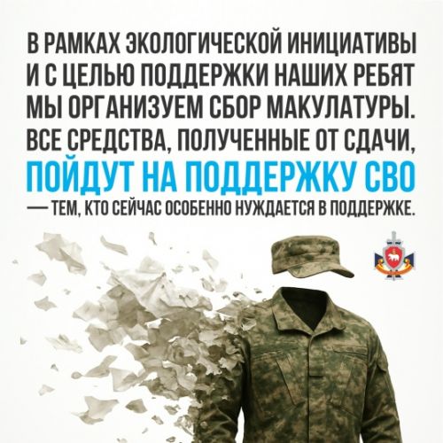 На территории подведомственных учреждений Министерства установят мобильные контейнеры для сбора макулатуры. По мере их заполнения отходы будут отправляться в специализированные пункты приёма вторсырья. Все вырученные средства направят на поддержку СВО.