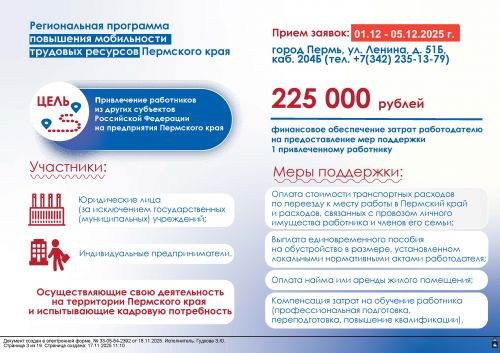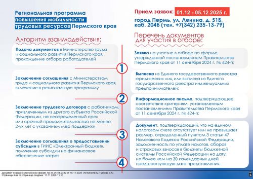 Региональная программа повышения мобильности трудовых ресурсов на 2025 - 2030 годы в рамках федерального проекта «Активные меры содействия занятости» национального проекта «Кадры»